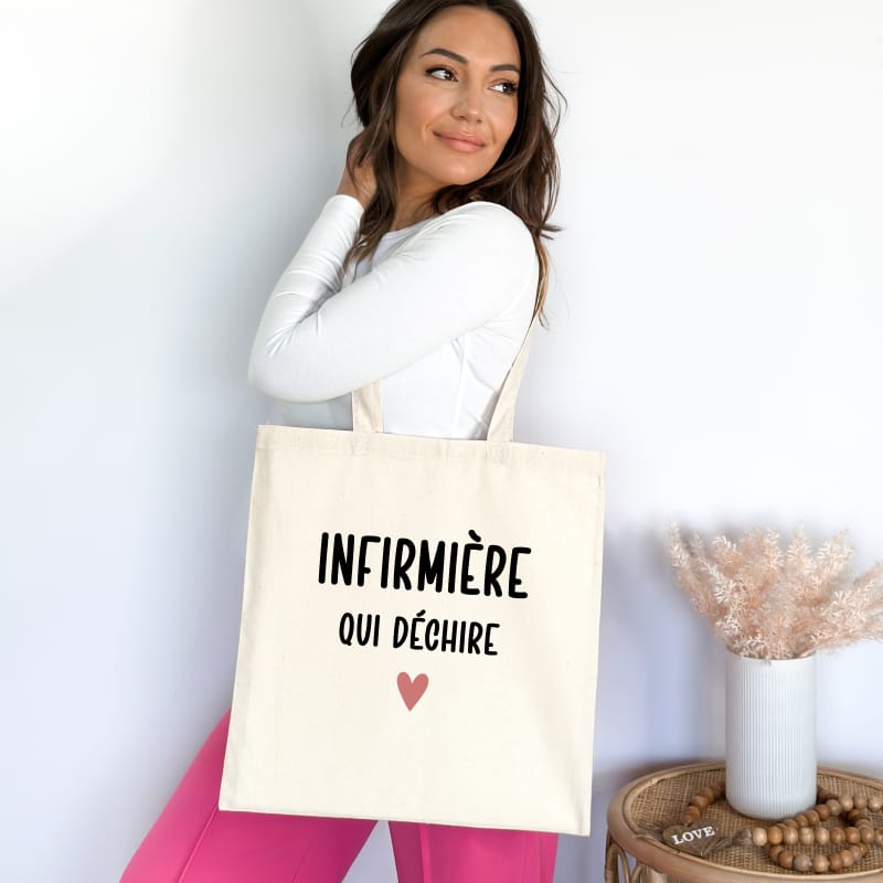 Tote bag infirmière qui dechire cœur
